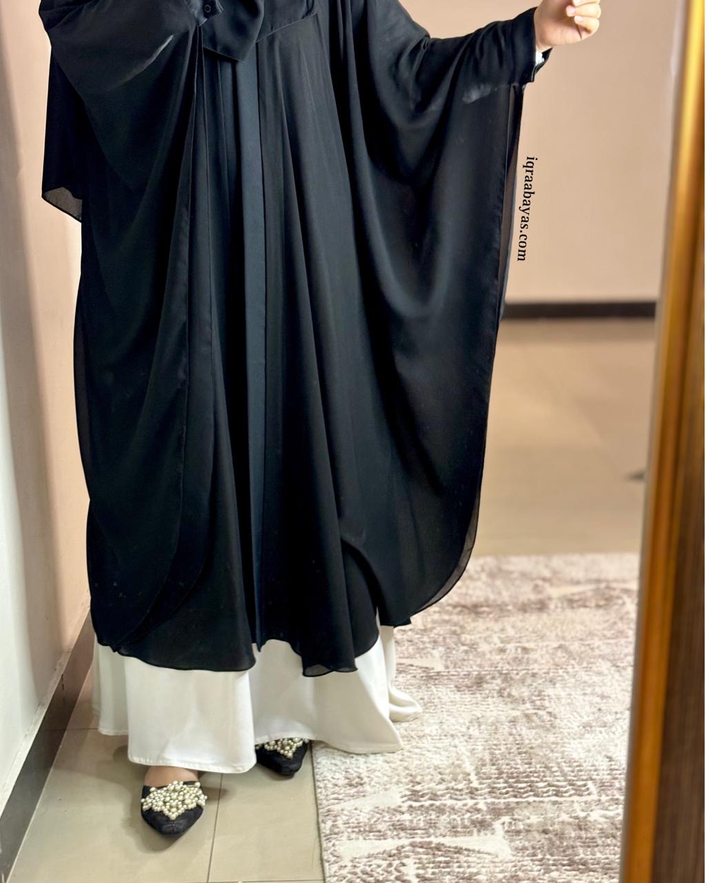 Introducing our Georgette Cape with Tich Button Sleeves: A chic and versatile garment designed to elevate your wardrobe with effortless style. Crafted from luxurious Georgette fabric, this cape boasts a sheer and lightweight texture that exudes sophistication.